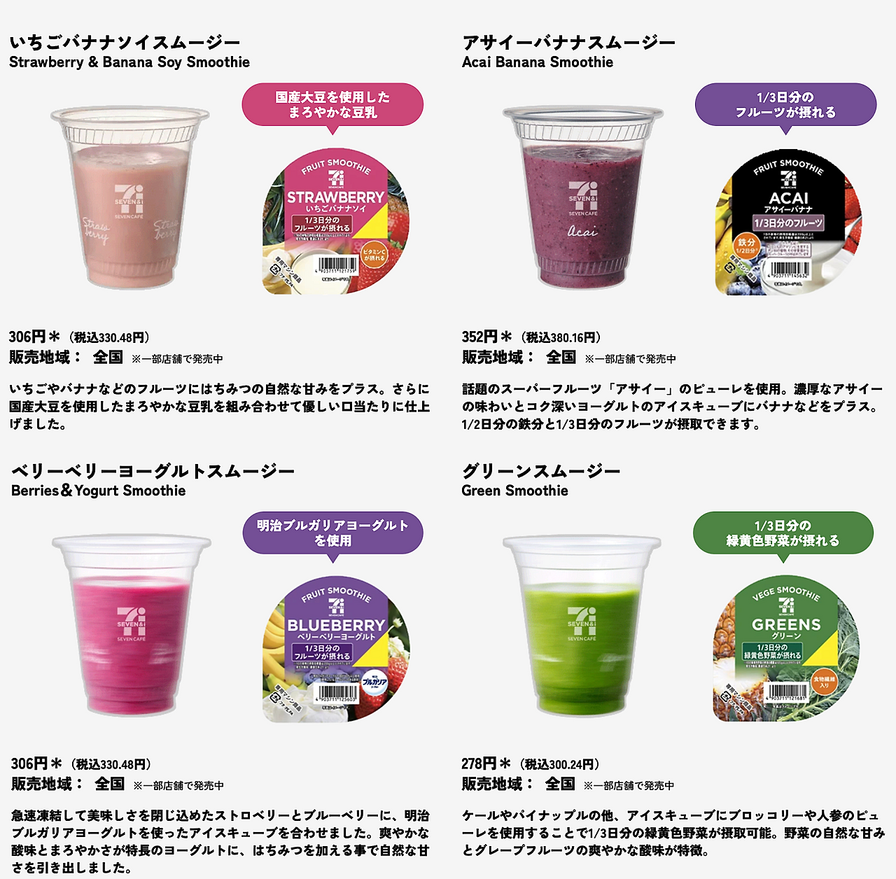 | 세븐일레븐 | 스무디 | 건강한 맛, 무첨가 원재료 |