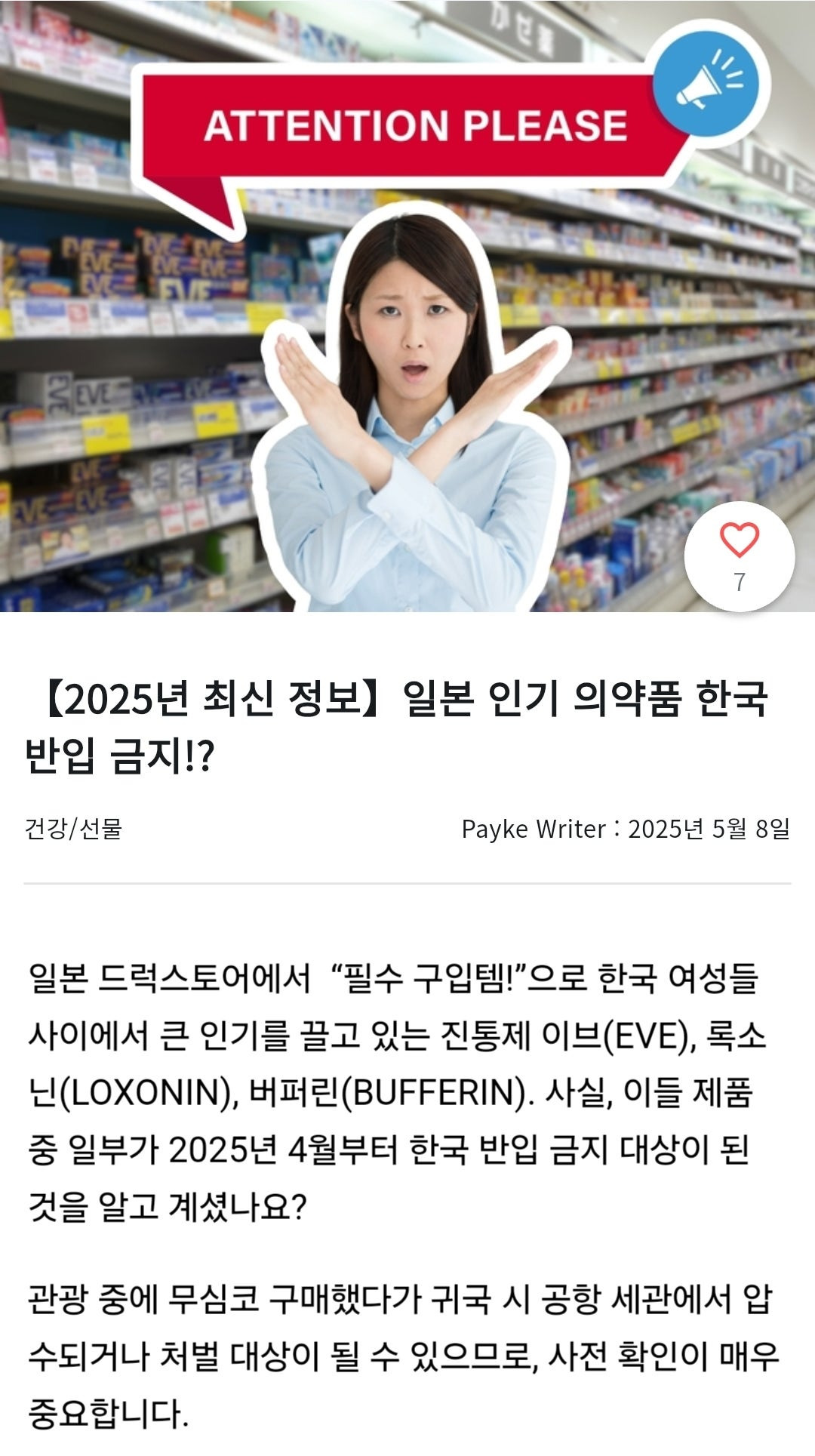 요즘 이슈인 반입금지 일본 드럭스토어 의약품과 대체 의약품에 대한 정리를 Payke 쇼핑앱에서 깔끔하게 정리를 해주어 공유 합니다. 후쿠오카 여행시 참고하시기 바래요.