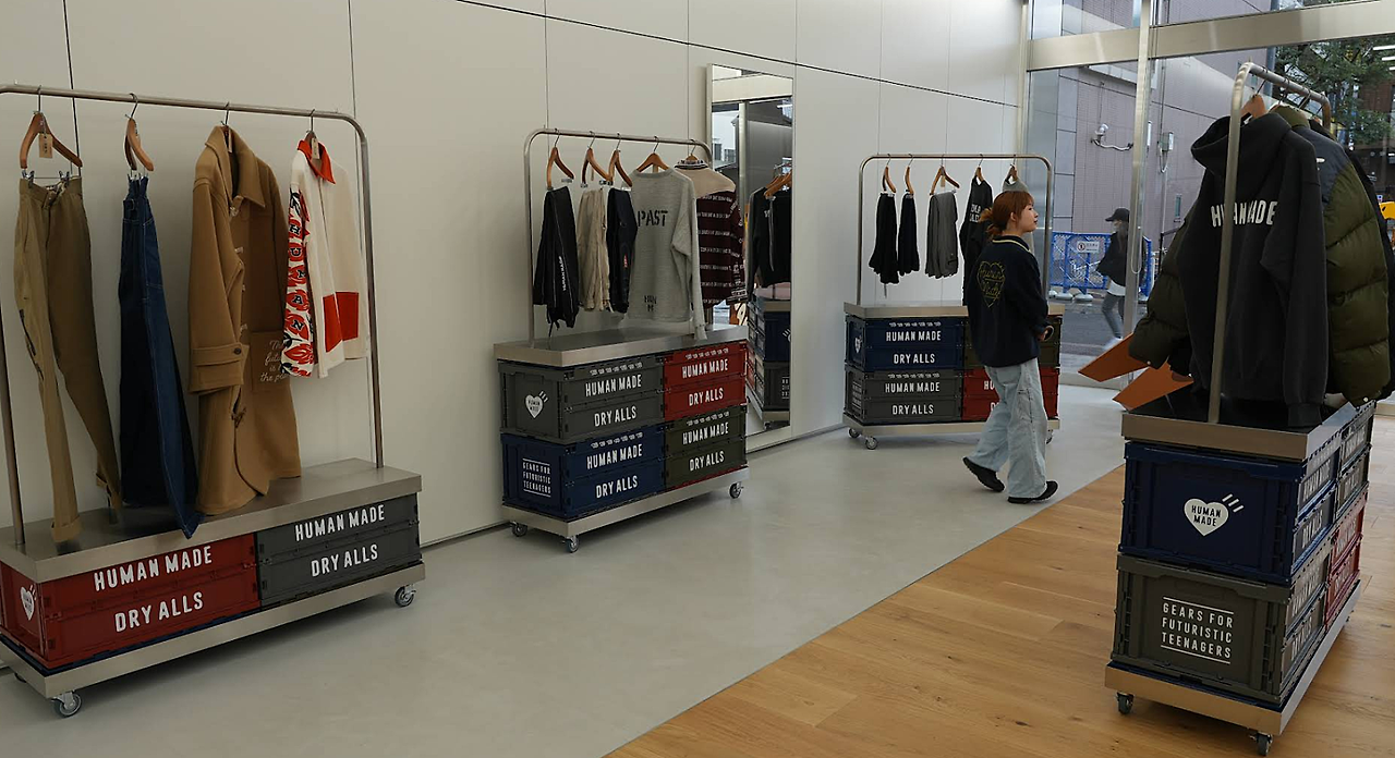 후쿠오카 다이묘거리에 위치한 휴먼메이드는 일본 현지인과 관광객 모두에게 인기가 많은 스트릿 브랜드입니다. 매장은 넓고 쾌적하며, 제품 수량도 충분해 다양한 티셔츠와 한정판 아이템을 구경할 수 있습니다. 매장 방문 시 웨이팅은 다소 있는 편이고 입장 후에도 주문서 작성 및 계산서까지 시간이 꽤 소요.