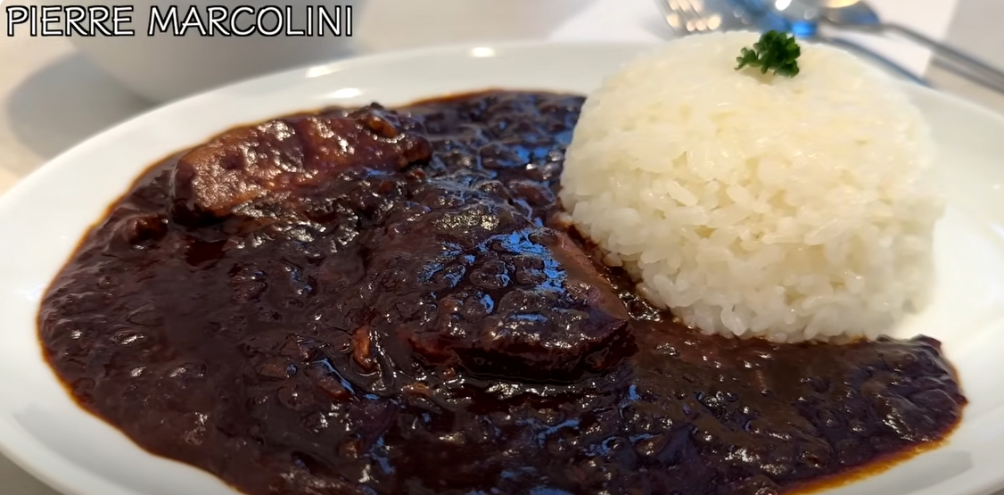 - 맛 평가: 거칠게 썰린 양파의 식감과 카카오의 기분 좋은 쌉쌀한 맛이 독특하며, 부드러운 쇠고기가 풍성하게 들어 있습니다. [245] 전반적으로 맛은 좋지만 가격에 비해 다소 평범하게 느껴질 수 있습니다. 세트 음료로 제공되는 카카오 티는 부드럽고 깔끔한 맛으로 카카오의 여운을 남깁니다.